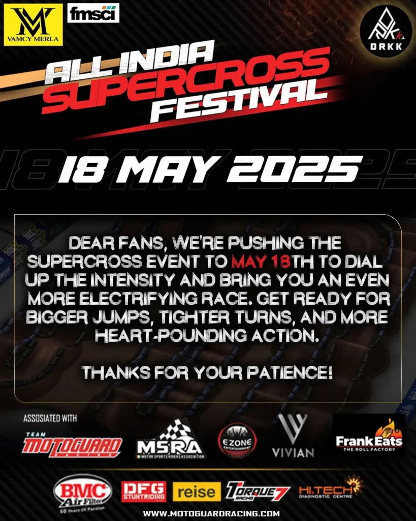 Get ready, Kochi! The All India Supercross Festival is coming to Eloor on May 18, 2025, for an unforgettable adrenaline-packed experience!